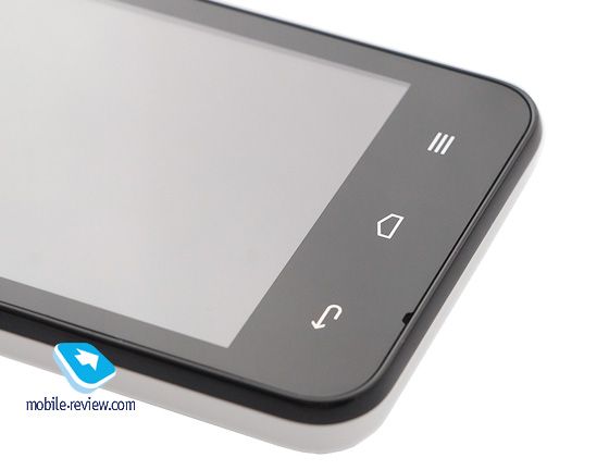 Beneath the screen are touch the “Back”, “Home” and “Menu”. They are marked with silver paint on the body, no backlight.